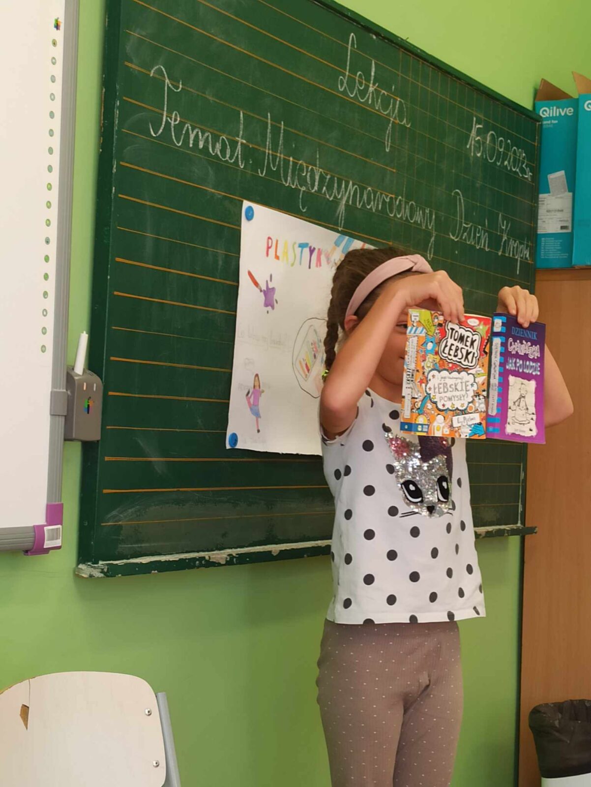 “Dzień Kropki”- dzień odkrywania talentów i radosnej zabawy w otoczeniu wystaw prezentujących prace uczniów klas 1-3 oraz 4-7, martwych natur z przedmiotów w kropki i balonów. Swoimi talentami podzielili się także uczniowie klasy 3c.