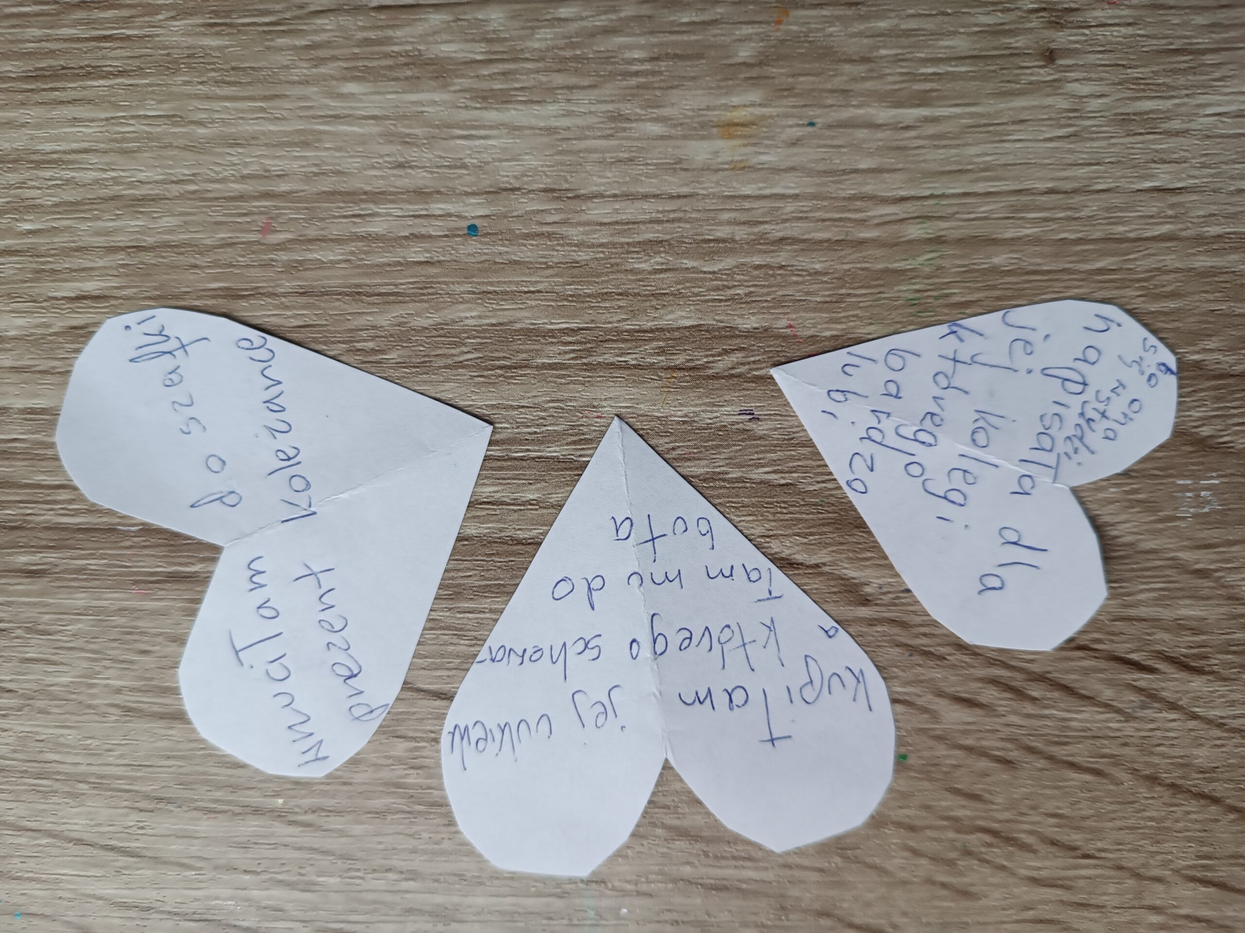 ZRÓB W TAJEMNICY 3 MIŁE RZECZY DLA KOGOŚ Z KLASY I ZAPISZ TO NA KARTCE WYCIĘTEJ W KSZTAŁCIE SERCA.