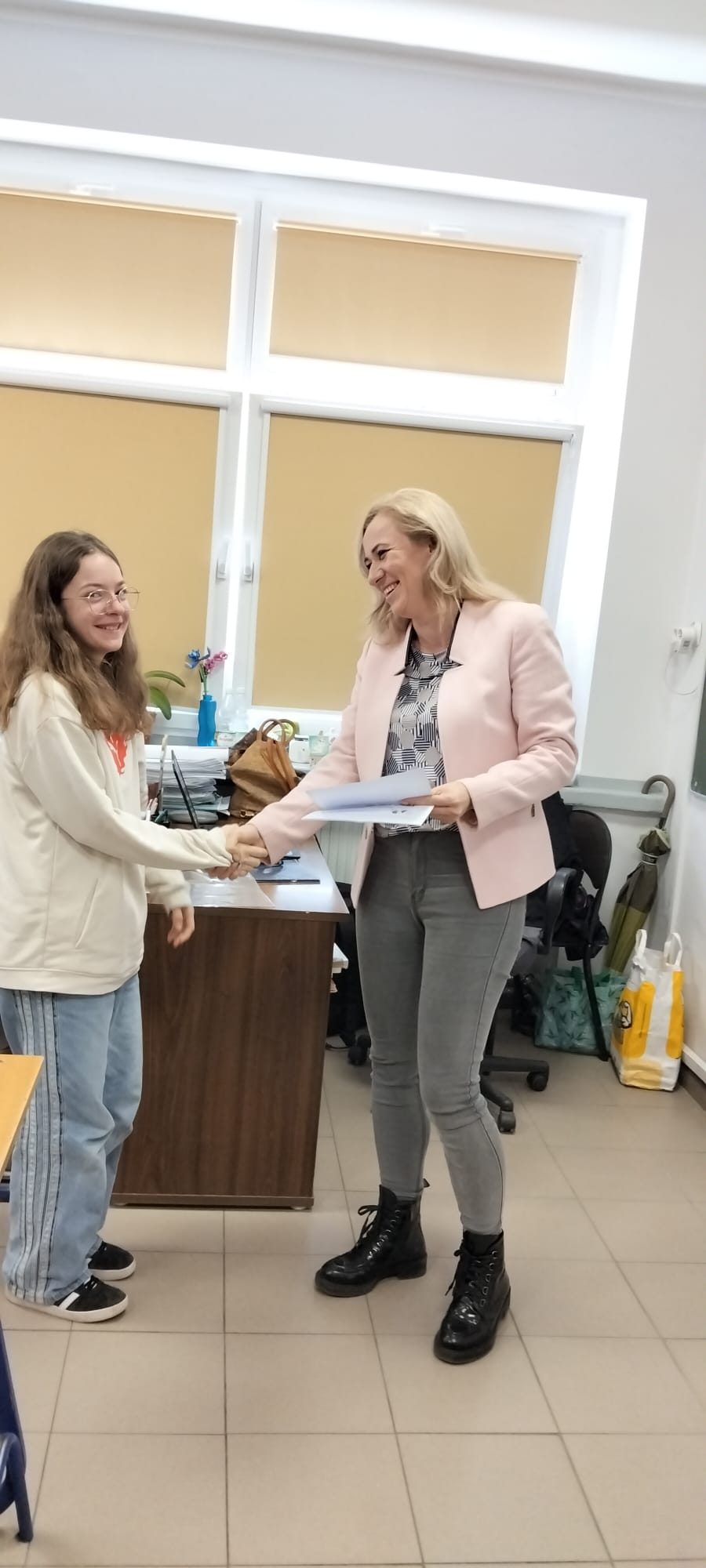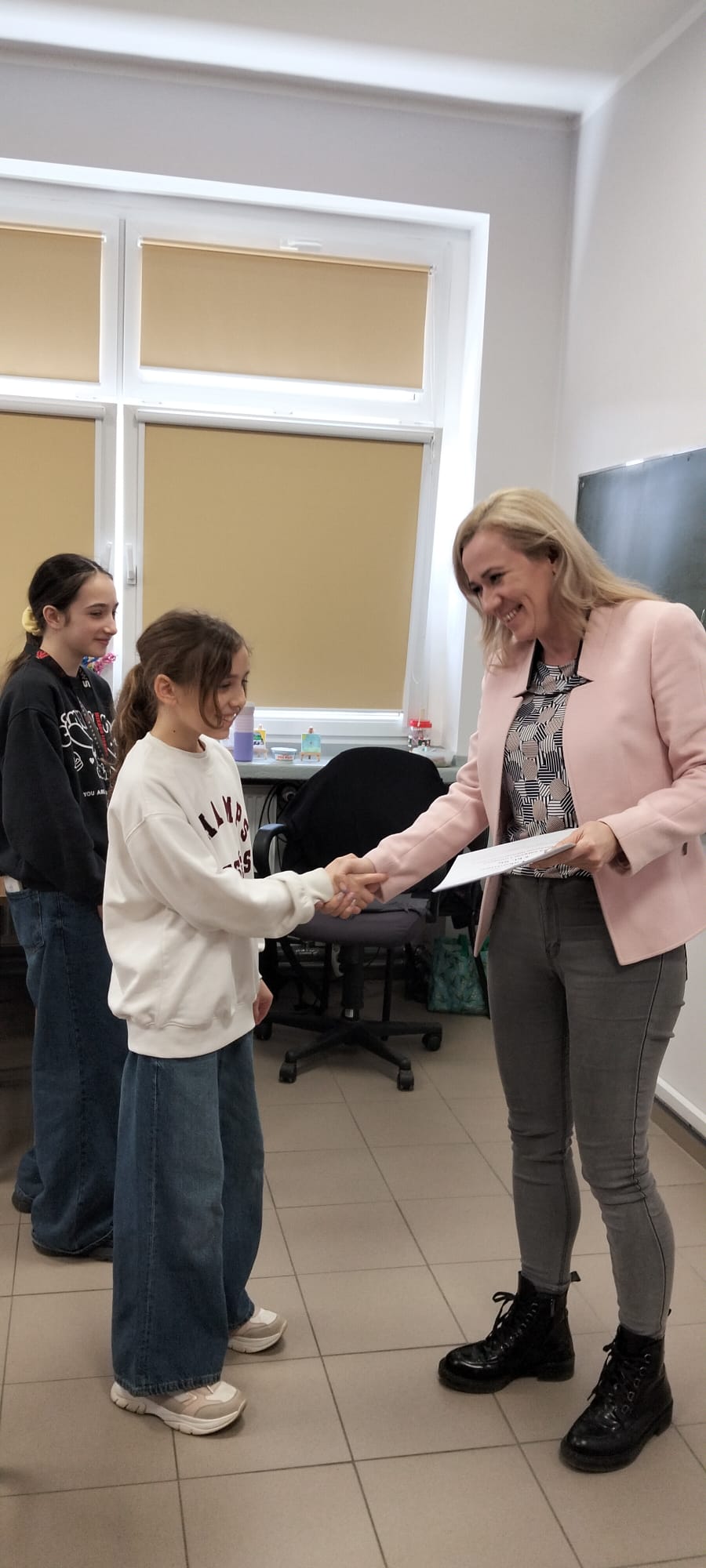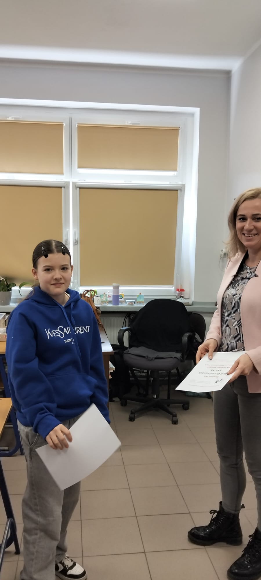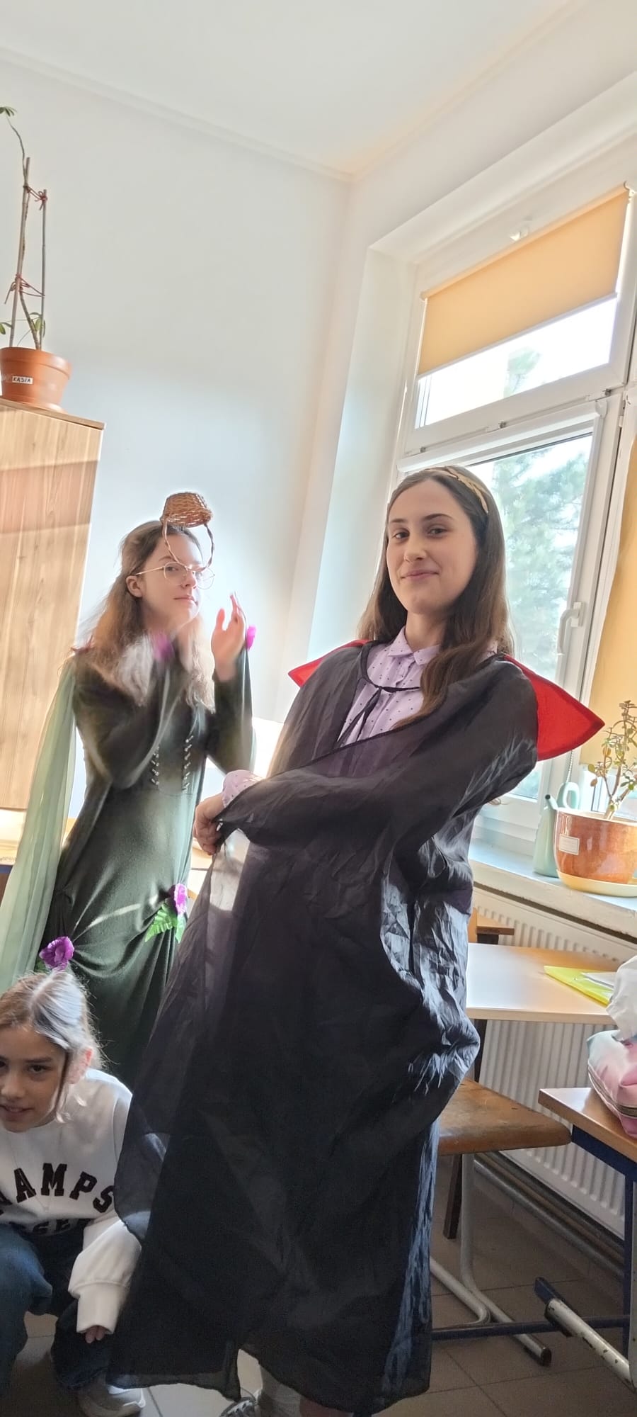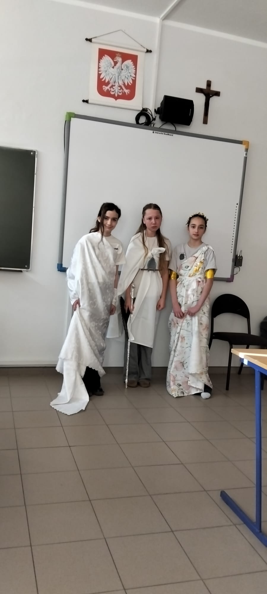 W klasach piątych co roku rozgrywany jest barwny Konkurs Mitologiczny. 11.03. 26 odbyła się kolejna edycja. Tym razem trzy klasy 5. miały ze sobą rywalizować. Niestety klasy 5a i 5c nie skorzystały z możliwości zdobycia ocen celujących z języka polskiego i nagród rzeczowych. W rywalizacji wzięły udział dwie grupy z klasy 5b. Dziewczyny rewelacyjnie przygotowały przebrania za boginie greckie, scenki opowiadające o wybranym micie i pochwaliły się ustnym opowiadaniem znanych mitów. Cała ósemka zasłużyła na I miejsce! Nagrody ufundowane przez dyrekcję szkoły wręczyła p. wicedyrektor Anna Prostko- Prostyńska.