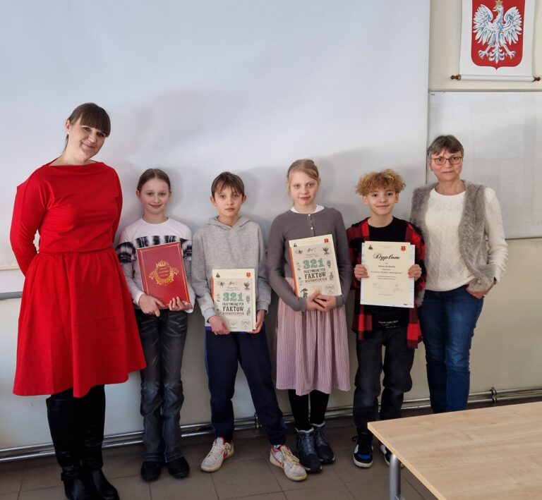 19 lutego 2025 ogłoszone zostały wyniki Konkursu Wiedzy o Starożytności dla uczniów kl. 5. Laureatami konkursu zostali: Agata Menesiak, Zofia Rogala, Franek Siemaszkiewicz i Alan Kubiak. Nagrody i pamiątkowe dyplomy laureatom wręczyły Pani Dyrektor oraz nauczycielka historii.