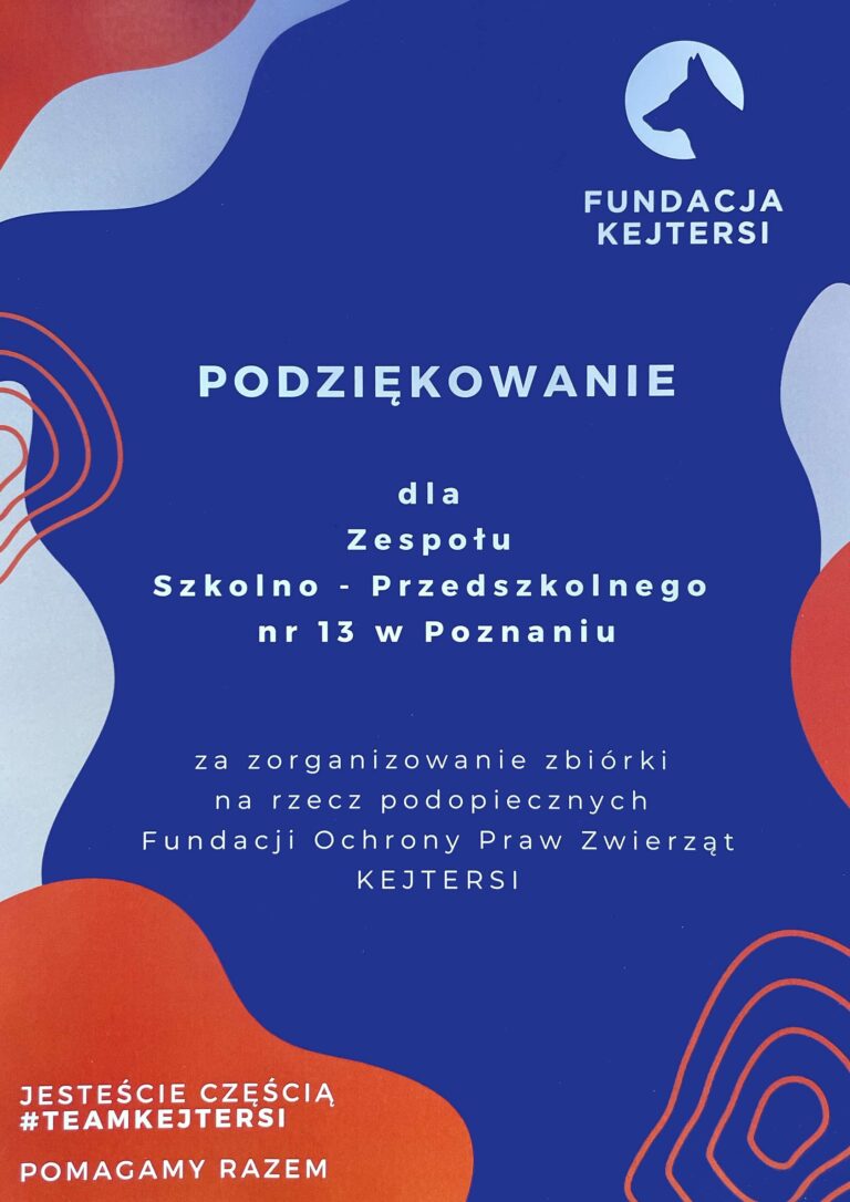 Wolontariusze Szkolnego Klubu Wielkoduchy oraz Fundacja Kejtersi dziękują wszystkim, którzy włączyli się do akcji zbierania karmy.