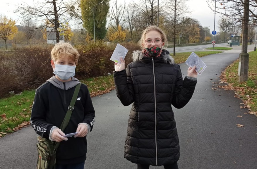 Zosia i Wincenty z klasy 6c wydrukowali ulotki i przez całe sobotnie popołudnie chodzili po Woli i zachęcali do głosowania. Tak napisali o swoim działaniu: